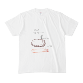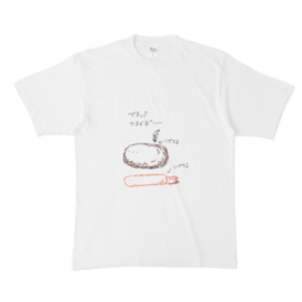 Tシャツ - XL - 白・この商品はpixivFACTORYで作られた商品です。サンプル画像は完成イメージのため、実物と異なる場合があります。 ・こげているコロッケとこげているエビフライ、すなわちブラックフライデー