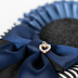 【セミオーダー】ご希望の場合は、下記をご確認の上メッセージよりご連絡ください。 <<< Sweet Things >>> ふんわりとしたプリーツ調のフリルに、 大きなリボンをあしらったロゼットです。 もこもことしたリボンがちらりと見える、ほんのり甘い仕上がりです✩︎⡱ リボンのセンター部分には、キラキラとしたハートのチャームを添えて華やかさもプラス。いつだって、恋❤︎のエッセンスを添えて鞄を彩ります。 < 仕 様 > ▶︎表側 缶バッジをつける部分には、フェルトの内側に磁石がついています。 ご自宅で楽しむ際には磁力によって気軽にいろいろな缶バッジをお楽しみいただけます。(外出時は落下防止の為、必ず缶バッジのピンで直接ロゼットを固定してください) ▶︎裏側 ブローチピンが1箇所あります。 また、上部に1箇所ループがついています。 チェーン(別売り)を繋げてご使用いただけます。(写真5枚目) https://morirosette.booth.pm/items/1698912 ▶︎ 対応缶バッジ:50-57mm (缶バッジは付属しておりません) ▶︎ 長さ 約11cm(金具含む全長) 4cm幅の持ち手まではご使用可能です。 < カラーについて > ▶︎サテンリボン 詳細) https://morirosette.booth.pm/items/1403112 < オーダーの流れ > 1)ご相談、打ち合わせ 希望のデザイン、カラーをメッセージよりご連絡ください。 オーダー記入例 デザイン ST フリル / BU14 メインリボン / BU05 サブカラー / オフホワイト *フリルは、ロゼット本体のひらひらとした部分です。内側と外側は同色での仕上がりです。 *サブカラーは、もこもことしたレース調のリボン部分です。 「オフホワイト」または「ブラック」のどちらかをお選びください。 ▽ 2)ご希望カラーの確認用写真 お選びいただいたカラー、もしくはご検討中のカラーの写真画像をメッセージからお送りします。 ▽ 3)お支払い 専用のお支払いページのご用意いたします。URLはメッセージでお伝えします。(非公開の為、BOOTHの商品一覧には表示されません) 内容をご確認いただき、お手続きください。 ▽ 4)制作 手作業でひとつひとつお作りいたしますので、出来上がりまでお時間を頂戴いたします。(納期については、お支払いの際にお伝えさせていただきます) お支払い後は、材料のカット等の制作準備に入りますのでデザインやカラーの変更はできかねます。 ▽ 5)完成のご確認・お届け 完成した写真画像をメッセージからお送りします。 オーダーいただいた内容とお間違いがないかご確認ください。 ご確認後、4〜7日程で発送をさせていただきますので、ご到着をお待ちくださいませ。 < 配送について > ポスト投函でのお届けです。 追跡はできますが、補償はございません。 詳しくは、下記ページをご確認ください。 https://morirosette.booth.pm/items/1566171 < お取り扱いについて > ▷無理な力を加えると破損する恐れがありますので、どうぞ優しくお取り扱いください。また鞄の材質により、ブローチピンが刺さりづらい場合がございます。 その場合は、ループにお手持ちのボールチェーン等を通してご利用ください。 ▷金具メッキ部分は、皮脂や汗がついたまま長時間置いておくと変色します。ご使用後は柔らかい布等での拭き取るなどのお手入れをおすすめします。 ▷リボンの端の部分にほつれ止めの処理をしております。取り扱いによって端の部分からほつれてくる場合がございますのでご注意ください。 < 注意事項 > ▶︎セミオーダーは、変更可能箇所のカラー変更のみを承っております。サイズやデザインの変更等のオーダーはお応えする事ができません。(一部サイズ変更可能モデルをのぞく) ▶︎お選びいただくカラーは、基本的にご依頼者様でご指定ください。いくつかの候補で組み合わせに迷った場合などのご相談にはのりますが、すべてこちらにお任せでのオーダーは承っておりません。 ▶︎お仕上がりの納期については、ご注文時期により異なる場合がございます。また、お急ぎ等の日付指定はできかねますので、イベント合わせ等がある場合は時間に余裕をもってオーダーをお願いいたします。 ▷同タイプのデザインでも、使用している材料で価格が異なります。 ▷パーツ等に細かなスレなどが多少ありますのでご了承ください。 ▷写真と実物とは色味が多少異なる場合がございます。 ▷撮影に使用した、鞄やグッズ等は商品に含まれません。 ▷お支払い後の変更・キャンセルはできかねます。