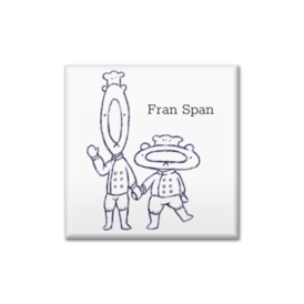 フランくんとスパンくんの四角缶バッチ(手繋ぎ白黒)