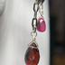 【1個売り】ガーネットとルビーとダブルハートのピアス
