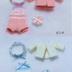アイドール東京vol.57にて販売しましたドール用ルームウェアのセットです。 ふわふわのカーディガン、履いて着せつけるタイプのインナー、キラキラの星を編み込んだかんむり、ビーズ付きしっぽ飾りの4点セットです。 ピンクとクリームブルーの2種類からお選びいただけます。 単品使いやお手持ちのアイテムと組み合わせての着こなしにもおすすめです。