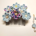 ご覧頂きありがとうございます。 ちりめん生地を使ったつまみ細工の髪飾りです。 丸つまみを二重にしてつまんでお花にしました。 コーム仕上げになっています。 下がりには水引の淡路玉も使って可愛く仕上げました。 また下がりはカニカンが付いていて取り外しが可能です。 結髪はもちろんハーフアップなどにお使いになっても可愛いと思います。 成人式の振袖や卒業式の袴に合わせてみてはどうでしょうか? お花はワイヤーが付いておりお好みの向きに微調整することも可能です。 ただあまり頻度が多くなると破損の恐れもありますのでご注意ください。 〖サイズ〗 全体 縦 9cm 横 10cm コーム 22足 縦 3.5cm 横 6cm 花 直径 2.5〜3.5cm 下がり 8cm 1つ1つ丁寧に作っていますが素人のハンドメイド作品ですので接着剤のハミ出しや歪み等ある場合があります。 ご理解頂ければ幸いです。 ちりめん生地は水に弱く濡れると縮みます。 また長時間の押さえ付けによっても変形します。 使用時や保管にはご注意ください。 実際の色は写真やお使いのモニターによって多少異なって見えることがあります。 ご了承ください。 発送は郵便局からの定形外での発送になります。 土日、祝日の発送はできません。