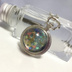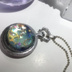 レジンのキーホルダー☆*・゚ 懐中時計のセッティングに宇宙塗りして、歯車パーツを封入して、さらにホログラム入りの半球レジンで覆って仕上げました。 このVer.の特徴はやっぱり半球!ドーム状のレジンの部分が拡大鏡のようになって底の歯車パーツやラメがおっきく見える!!そんで半球のとこにもホログラムを仕込んでるので不思議な見え方します!(言葉にしにくい…!) 大きさは懐中時計が4cmくらい、宇宙部分が直径2cm。厚みが1.3センチくらい。 レジンいっぱい使ってるからすこし高めで重め…。バッグにつけたりするよりカバンの中のポーチにつけるとか、おうちのコルクボードに飾るとか、観賞用ぎみな使い方がいいかも。 銀色パーツ。 ホロは4種(ドームだけで3種あるよ)でファンタジックなかんじ!懐中時計の裏面の模様も綺麗! 発送するときにメッセージカードを封入します✽*。
