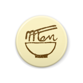 缶バッジ - 32mmmenロゴの缶バッジです 文字黄土色、背景薄黄色 あっさり関西出汁風仕様 サイズ直径32㎜ フック型ピン 他の商品と一緒にいかがでしょうか この商品はpixivFACTORYで作られた商品です。サンプル画像は完成イメージのため、実物と異なる場合があります。
