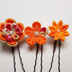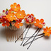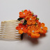 つまみ細工の髪飾りミニコームとUピンのセット(オレンジ系)