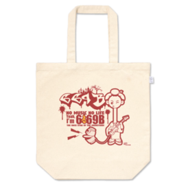 トートバッグ - M - プリント面積中6-69B 墓場のギタリスト・ロクロックビー(カラー:ダージリン) DESIGN-151Aのオリジナルキャラクターです。 【英文】 No music no life Yeah, I’m 669B, the rock star of the graveyard! 【和訳】 骨の髄まで音楽好き 墓場のロックスター、そうさ私が669-B(ろくろ首)
