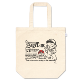 トートバッグ - M - プリント面積中BABYTALK HIPHOP-GAL(カラー:ブラック) DESIGN-151Aのオリジナルキャラクターです。 It seems babies just saying googoo gaga, but That is because we don’t know baby language. This character “Baby Talk” translate what the babies saying in many situations. 赤ちゃんって何を話しているのかわかりませんよね。 でも、もし赤ちゃんの言葉がわかったらこんな事を言っているのかな・・・・ そんなのをイラストにしたのが「BABYTALK」です。 【英文】 I'm settle down nowBut I was wild when I was little, I was a little wild when I was in belly, Kickin’panchin’and ignoring’ I am happy now'cuz of my pop and mum, That is the truth, reality n’for sure thing. Luv you my parents 【和訳】 今となっては落ち着いた私だけど、昔はしたさ「悪さ」 ママのお腹にキック・パンチ!パパの問いかけには完全無視さ! でも、今こうして幸せなのはパパとママのお陰。 それが「事実」「現実」「確実」 パパ、ママ、これからも宜しくね!