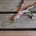 ヘンプにシルク糸を編み込みポイントでウッドビーズを付けました。ウッドビーズはアソートになります。 シルク糸は部分や玉により色味が違うため、世界に一つだけのストラップが出来ます。(そのためサンプル写真とは色味に多少の違いが出ますがご了承下さい) 長さ:約23センチ(2重リングを含めて直線で計測)/携帯ストラップ型金具の長さは約5センチ 長さは変更可能ですのでご希望がございましたらお申し付け下さいませ。 比較的軽めのコンパクトカメラやトイカメラでご使用いただけます。 (参考写真のカメラはオリンパスペンEE2で約342gです) 携帯電話やスマホでもご使用可能です。 <取り付け部分について> 2重リングと携帯ストラップ型金具が付いています。(携帯ストラップ型金具は取り外しが可能です) 取り付けの際にも携帯ストラップ型金具を2重リングから取り外し、カメラへ取り付けてから、ストラップ本体の2重リングへ付けると簡単に着脱する事が出来ます。 ◆留め具部分をベルトタイプやナスカンにて製作する事も可能ですのでお気軽にメッセージをいただけますと幸いです。 ◆同シリーズで2点吊りのカメラストラップ・1点吊りのネックストラップもございます。 ◆麻(ヘンプ)について 麻(ヘンプ)とはアサ科の大麻(おおあさ)の事で科学肥料や農薬を必要としない環境にやさしい植物です。 当店のヘンプはルーマニア産の最高級ヘンプを使用しております。 丈夫で長く使え、使っていると肌になじむ100パーセント天然素材です。 毛羽立ちが少なく柔らかいので、首にかけていてもチクチクせず衣服にカスが付くこともありませんでした。(感じ方は個人差があります) -------------------------------------------- ◆こちらの商品はご注文いただいてからの製作となります。(お支払い後+約2日) ◆1点1点手作りのため、同じ商品でも多少違いが出たり編み目が不揃いな事もございます。なにとぞご理解の上お買い求め下さいます様、お願い申し上げます。 ◆麻は天然素材のため革製品等のように特有の匂いがございます。 当店の麻は匂いが比較的少ない最高級麻を使用しておりますが、天然素材のため個体差、また感じ方には個人差がございます。 時間の経過と共に薄らいできますが気になる方は布製品に使用出来る消臭スプレーを使用し、風通しの良い所で良く乾かしていただく事をお勧めしております。 また、どうしても気になる場合にはご使用後でも返品返金等、出来る限りの対応をさせていただきます。 お取り扱い方法についてご不明な点等がございましたらお気軽にお問い合わせ下さいませ。