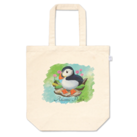 トートバッグ - S - プリント面積小展示会にて展示していた作品を商品化致しました。 細かな部分は展示作品とは異なりますのでご了承ください。 ニシツノメドリ通称パフィンという鳥のトートバッグです。 この商品はpixivFACTORYで作られた商品です。サンプル画像は完成イメージのため、実物と異なる場合があります。