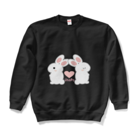 うさぽスウェットのブラックカラーが、 ついに発売されたぽ☆(o^・^o) この商品はpixivFACTORYで作られた商品です。サンプル画像は完成イメージのため、実物と異なる場合があります。