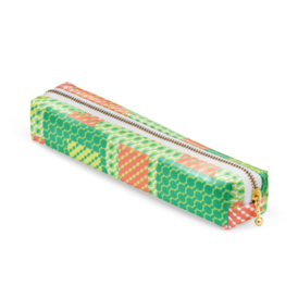 ペンケース - 20 x 4 x 4cm - ホワイトこの商品はpixivFACTORYで作られた商品です。サンプル画像は完成イメージのため、実物と異なる場合があります。 四角を組み合わせた継ぎ接ぎのようなイメージ。 柄は葉っぱのようなものと丸を組み合わせたもので、野菜をイメージした色合いです。 絵が重なっているところは色が違うのでサンプル画像を参考にしてください。