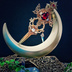 魔法 ブローチ レッド 精霊魔法の紋章ブローチ 月 蝶々 赤 ファンタジー 51