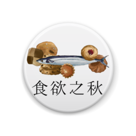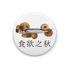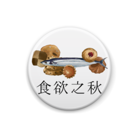 缶バッジ - 44mmほろ苦い大人の味、さんまの腸とサクサク甘いクッキーの絶妙なハーモニー。秋じゃなくてもI can't stop。食欲は止まらない。 さんまを丸ごと食べられる大人なあなたや、好き嫌いなく何でもいただいちゃうあなた。大食いアピールにもおすすめの一品です。