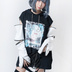 JillpunkオリジナルパンクKERA アニメファンタジー アネモネアドーニスオートマタ鉄チェーンジッパー付きゆったりクルーネックパーカー メンズ レディー V系 カッコいいおしゃれ大きいサイズ男女兼用ファッション秋葉系