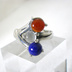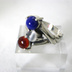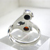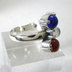 紺珠伝ヘカーティア・ラピスラズリモチーフのリング ヘカーティアのキーワードは「三身」・「豪華」・「ラピスラズリ」 ラピスラズリは絶対石留めに使おうと思ってました。 そこで「地球・異界・月」三身の内「地球」をラピスラズリで表現しました。 残りの「異界」は深い紅のカーネリアン、「月」はそのままムーンストーンです。 捻った腕のシンプルな形状に3つの石を配したちょっと豪華な見た目になってます。 石をメインで見せたいジュエリーよりのデザインとも言えます。 本体:シルバー925 石:ラピスラズリ、カーネリアン、ムーンストーンラウンドカボションカット ※天然石使用のため石の色味や模様が画像と異なる場合があります サイズ:16号