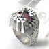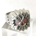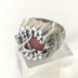 下剋上の盟友正邪と針妙丸の2人をモチーフにしたリング 正邪に舐め回されながらも飲み込まれぬよう針を突き立てる針妙丸のイメージで作りました。 一寸法師のハイライトと言えば鬼に飲み込まれ体内で大暴れする箇所。 そのイメージを踏襲し、逆転する矢印で構成された牙の中に針妙丸カラーの石を留めることで2人の関係性を表現してみました。 反逆のため強かに針妙丸を利用しようとする正邪。 一方、針妙丸も自ら虎口に飛び込み世を変えるために奮闘する。 「しゃぶりつくそう、飲み込んでしまおう。」 「そうはさせぬ、手綱を握るのは自分だ。」 2人のちょっと歪んだ愛情表現を、艶めかしい舌とそれを突き挿す針でイメージしてみました。 本体:シルバー925 石:オレンジ×パープルジェードラウンドカボションカット ※天然石使用のため石の色味や模様が画像と異なる場合があります サイズ:18号
