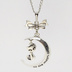 アンティークシルバー 三日月と猫の大人可愛いネックレス ゴシック リボン ムーンネックレス アジャスター付