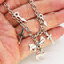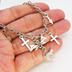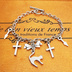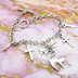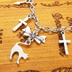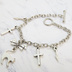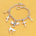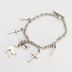 シルバーカラー 猫シルエットモチーフとリボンにロザリオと時計の針が連なるブレスレット