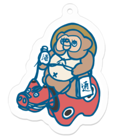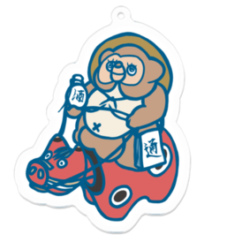 アクリルキーホルダー - 70 x 70 (mm)赤べこに乗った信楽焼のたぬき この商品はpixivFACTORYで作られた商品です。サンプル画像は完成イメージのため、実物と異なる場合があります。