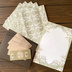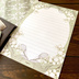 ご覧いただきありがとうございます。 アンティークな雰囲気漂うすずらんのレターセットが できました。 春から夏に向かうような爽やかな緑の中 真っ白で可愛いらしいすずらんの花達を 上へ上へと湧きあがる泡のように 優しく編まれたレースの模様のように 柄にしました。 罫線面も可憐かつ力強さを感じる 大胆なデザインに。 シールはクラフト紙にカラーと白インクの印刷で すずらんが映えるようにしました。 今回の用紙はモンテシオンを使用。 モンテシオンは東日本復興支援のために 石巻の製紙会社が作られた紙です。 三月に制作したレターセットに選びました。 柔らかい厚みのある紙は 人々の思いの強さを湛えているようです ふかっとペン先が取られるような感覚があるので 自然と文字を書くスピードもゆっくりに。 デザインも紙も 手紙にしたためるメッセージを、 優しく包み込むようにと作ったレターセット。 ゆっくり時間をかけて お手紙綴ってくださいね。 サイズ(数量) 便箋 A5(6枚) 封筒 洋2(3枚) 用紙 便箋 モンテシオン(オフセット印刷) 封筒 コットン シール クラフト紙