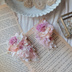 ・布花のドール用ヘッドドレスです ・染花、レース、本物のお花を組み合わせたクリップタイプ ・淡いピンクのお花を組み合わせています ・長さ6cm〜6.5cm ・ひとつひとつ手作りのためお花の向きや色合いが若干異なります