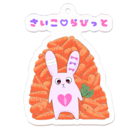 ちょっと病んでるサイコなうさぎです。 リボン型のピアスと包帯がお気に入り。 よく見ると積み上げられたニンジンにはリスカの跡が…。 この商品はpixivFACTORYで作られた商品です。サンプル画像は完成イメージのため、実物と異なる場合があります。