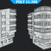 中国の都市部にありそうなビルをイメージして作成しました。 テクスチャで立体感を出しているのでローポリになっています。(5644ポリゴンメッシュ) ですので、FPSゲームなどに簡単に配置できる仕様となっております。 ぜひお試しください! Prepared from a 2048x2048 two texture set (Base map and Glass alpha) and very optimized for map making. Multiple houses can be made using the with using Base texture. Poly 5,644 and Verts 8,175 You can copy and rotate this mesh and make it longer building.