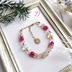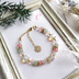 ※こちら在庫品の為、再販予定はございません。 劇団員達のイメージカラーを使用したブレスレットです。 座金には花柄風の物を使用し、さり気ないアピールポイントとなっております。 全体的に小さめの石を使っており、細身な仕上がりになっております。 【使用素材】 天然石(染色・着色・人工石含む)、カットガラス、ロンデル、座金、メタルビーズ 全長:約21.5cm(アジャスター:約5cm) 発送方法:クリックポスト ◆石は性質上、色味・ひび割れ・凹み等、個体差がある場合がございます。 ◆お使いのモニターによって若干の色味の違い等がある場合がございます。 ◆金属アレルギーの方はご注意下さい。 ◆無理に引っ張るなど強い力を加えますと破損の原因となりますので、取り扱いには十分にご注意下さい。 当方のショップトップページに記載しております注意事項と発送方法も合わせてご確認下さい。 気になる点がございましたら、お気軽にお問合せ下さい。