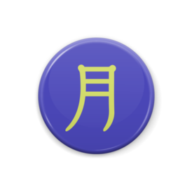 紺色背景に「月」と書かれたシンプルなバッジです。 この商品はpixivFACTORYで作られた商品です。サンプル画像は完成イメージのため、実物と異なる場合があります。