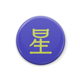 紺色背景に「星」と書かれたシンプルなバッジです。 この商品はpixivFACTORYで作られた商品です。サンプル画像は完成イメージのため、実物と異なる場合があります。