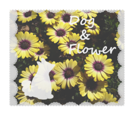 メガネ拭き春の花と犬をコラボさせてみたくて作った作品です! ※こちらは、サイドにレースありのデザインです。 ※この商品はpixivFACTORYで作られた商品です。サンプル画像は完成イメージのため、実物と異なる場合があります。