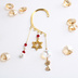 ~さっと片耳に掛けるだけ、痛くない耳飾り~ 猫と六芒星を組み合わせたイヤーフックです。 六芒星は調和・完全のシンボルで古来から魔除けとしても使われてきた形です。 また、使用しているクリスタルは全てスワロフスキー社製です。 オクタゴン(八角形)は、「陰」と「陽」を併せ持ち、バランスが良く安定した形から風水では運気をアップさせる縁起の良いものとされています。 普段使いからパーティーシーンなど幅広い場面で使用できるデザインです。 猫好きさんへのプレゼントにもどうぞ♪ イヤーカフとの重ね付けもおすすめです♪ ★お好みのカラーをお選びください。 赤、橙、緑、青、紫 ★Radiantのイヤーフックのポイント★ ・耳の形に合わせて自由に調整可能なので落ちにくい ・1日中着けていても痛くならない ・見かけによらず着けているのを忘れてしまうほど軽い ・ピアスやイヤリングが苦手な方も気軽に着けられる ◆サイズ・・・フリー、全長約12cm ◆素材・・・スワロフスキークリスタル(光線透過率:93%)、真鍮パーツ、コットンパール ※イヤーフック部分はメッキですので金属アレルギーの方は購入をお控えください。 ※右耳、左耳どちらでも使えるデザインです。