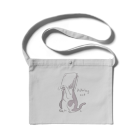 ライトグレーうちの猫が紙袋を被った時のイラストのサコッシュです。 ※この商品はpixivFACTORYで作られた商品です。サンプル画像は完成イメージのため、実物と異なる場合があります。