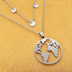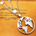 ダブルチェーン ステンレス世界地図ペンダントネックレス ロングネックレス アジャスター付