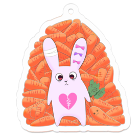 アクリルキーホルダー - 50 x 50 (mm)名前は「さいこ♡らびっと」。 ちょっと病んでるサイコなうさぎです。 リボン型のピアスと包帯がお気に入り。 よく見ると積み上げられたニンジンにはリスカの跡が…。 この商品はpixivFACTORYで作られた商品です。サンプル画像は完成イメージのため、実物と異なる場合があります。