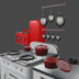 ・キッチン台(6色) ・キッチン台 開閉ギミック(VRC想定) ・キッチン水栓(6色) ・キッチン水栓 開閉・水栓ギミック(VRC想定) ・オーブン付きガスコンロ(6色) ・オーブン付きガスコンロ 開閉・オーブン・ガスコンロギミック(VRC想定) ・冷蔵庫(6色) ・冷蔵庫 開閉ギミック(VRC想定) ・フライパン 4種類 ・重なったフライパン ・壁かけのフライパン(2種類) ・鍋(2種類) ・蓋と別々になった鍋 ・蓋の開いた状態の鍋