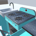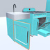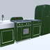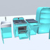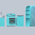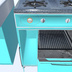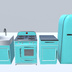レトロなキッチンです。 VRChat想定のギミック付きです。 ・蛇口から水が出る ・コンロから炎が出る ・引き出し、扉の開閉 ・オーブンが付く ・冷蔵庫開閉