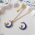 蒼い月と猫のチャームのドール用ネックレス