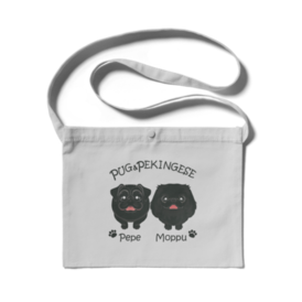 この商品はpixivFACTORYで作られた商品です。サンプル画像は完成イメージのため、実物と異なる場合があります。 黒パグPepeちゃんとペキニーズMoppuちゃんのサコッシュです