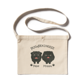 サコッシュ - 300 x 230 (mm)この商品はpixivFACTORYで作られた商品です。サンプル画像は完成イメージのため、実物と異なる場合があります。 黒パグPepeちゃんとペキニーズMoppuちゃんのサコッシュです
