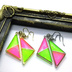 蛍光カラーで元気よく! 2色使いピアス【ゴールド】【両耳用】です。 蛍光ピンクと蛍光グリーン。この二色がすごく好きで! ちょうど良いフレームがあったので、配色したらものすごく可愛く出来ました😊 左右の耳で色の配置が変わるようにしてあります。