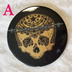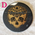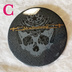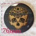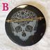 New*黒と白と金のしゃれこうべ*缶バッジ:400yen レトロな印刷で表現しました*マットな金インクが穏やかに輝くしゃれこうべの缶バッチです★ 種類は6パターンそれぞれに色の乗り方が違い様々な印象が楽しめます* ■お色の解説*黒い和紙に白・金インクの重ね方で刷られております。 A=金のしゃれこうべ×白ロゴ(背景無 B=白のしゃれこうべ×金ロゴ(背景無 ★C~以降は背景にペパヴェール-罌粟の華-を描いております* C=は白のしゃれこうべ+罌粟×金ロゴ D=金のしゃれこうべ×白のロゴ+罌粟 E=金のしゃれこうべ+罌粟×白のロゴ F=白のしゃれこうべ×金のロゴ+罌粟 *E・Fはペパヴェールが金なのでにぎやかですね。 ☆サイズは76㎜の絵柄が細かく愛でれるサイズ感です* *貴方のお供にmémento moriを*