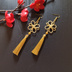 ご覧頂きありがとうございます(^_^) アジアンコード(1mm)で作った吉祥結びとタッセルを組み合わせたピアスです。結びとタッセルの間に取り付けたキラキラとしたゴールドの透かしビーズがアクセントとなっております。 着物、浴衣、袴、和ゴス、和ロリ、チャイナドレス等の衣装にあわせていかがでしょうか?(^_^) 飾り部分 約9.5cm(結び約3~3.5cm四方) 金具の変更は ★金属イヤリング(ネジバネ式) ★樹脂イヤリング ★樹脂フック ★ポストピアス ★ステンレスフック に無料変更可能です。ご希望の方はメッセージくださいませm(_ _)m ※こちらは結び部分の後ろ側を乾くと透明になる接着剤で固めてあります。またハンドメイド作品になりますので、ひとつひとつ差異があります。市販のもののような完璧さや耐久性をお求めの方はご購入をお控えください。 飾り結び 中国結び メドゥプ アジアンノット タッセル チャイナ 中華風 和風 鬼滅 鬼滅の刃 刀剣乱舞 とうらぶ 和ゴス 和ロリ 和 着物 袴 浴衣