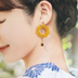 おめでたい七宝結びを大輪に見立てて作りました。 大ぶりなモチーフとダークに輝くしずくで耳元を華やかに飾ります。 ミンネは勿論ですが、イベントでも大変ご好評をいただいているアイテムです。 水引は大切な贈り物を飾るおめでたいアイテム。 そんな日本の文化を詰め込んだ水引アクセサリーは晴れの日に使っても勿論素敵ですが、 普段使いのアクセサリーとして、 また、友人や家族への贈り物にも最適です。 ◇素材・サイズ◇ 素材:水引、金属 サイズ:(金具含め)横/約3.5cm 縦/約5cm ◇お色◇ ご購入の際に備考欄にてご希望のお色をお伝えください。 ・A(山吹) ・B(青) ・C(赤) ・D(黄緑) ・E(藤) ・F(茶) ・G(桃) ・H(黒) ・I(クリスマス) ◇金具◇ ピアス・イヤリングよりお選びください。
