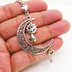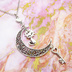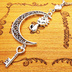 アンティークシルバー 猫とアラベスク調の透かし三日月を組合せたネックレス ハート 鍵 ムーン 大人可愛い アジャスター付