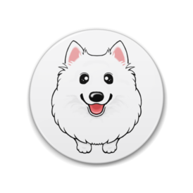 缶バッジ - 88mmこの商品はpixivFACTORYで作られた商品です。サンプル画像は完成イメージのため、実物と異なる場合があります。 笑顔のサモエド缶バッジです 直径88ミリの大きいサイズ