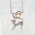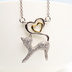 キラキラ輝く猫とハートを組み合わせたオープンハートネックレス シルバー925 キュービックジルコニア 18Kゴールドコーティング