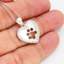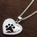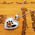 肉球の型抜きがワンポイントのキュービックジルコニアで縁取られたオープンハートネックレス 猫好き 犬好き