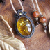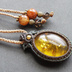プレスドアンバーとブロンズルチルクォーツのマクラメネックレス 「TESSERA-gardenia-」