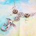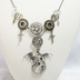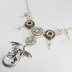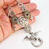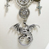 アンティークシルバー スチームパンク風ドラゴンと歯車の多層多重ネックレス スワロフスキー 長さ調整可 アジャスター付